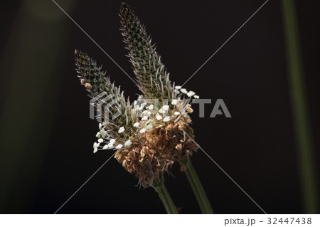 オオバコの花とつぼみのクローズアップ(公園の広場のスモトリグサ)