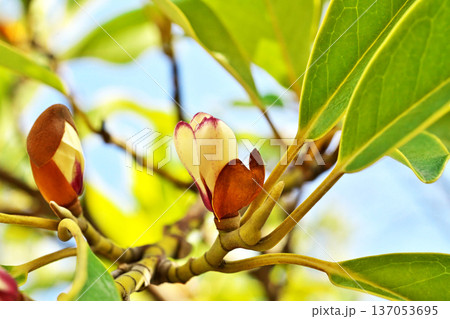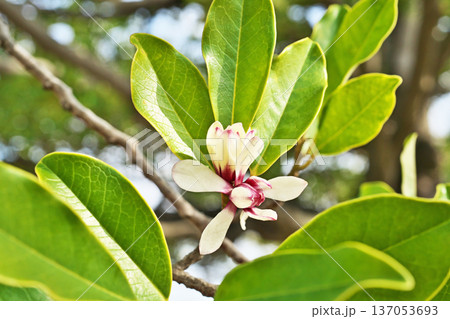 白色のオガタマノキの花(春、三月)