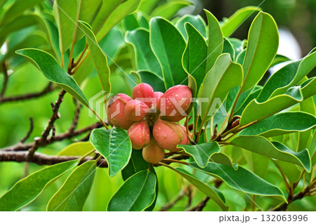 雨の水滴が付いているオガタマノキの実(夏、六月)