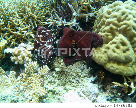 擬態がバレないようジッとしている2匹のタコ