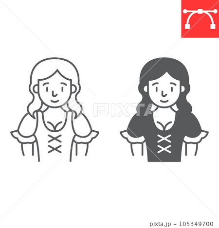 Bavarian woman line and glyph icon, oktoberfest and festival people, waitress vector icon, smiling woman vector graphics, editable stroke outline sign, eps 10.
