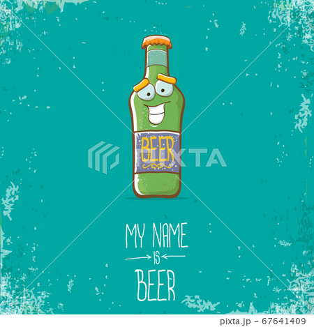 vector cartoon funky beer bottle character isolated on grunge azure background.vector beer comic label or poster design template. my name is beer or happy friday concept illustration