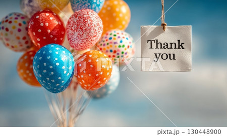 Colorful balloons and a thank you card express heartfelt gratitude in a bright setting