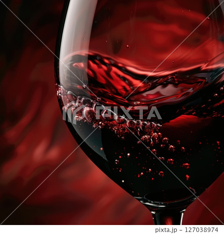 Deep Red Wine Glass with Fluid Motion Against Dramatic Background