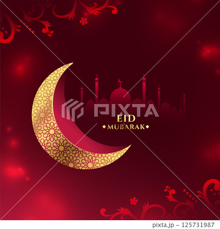 shiny eid mubarak wishes card with crescent and moon