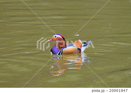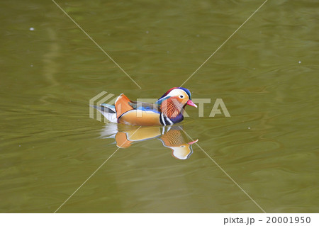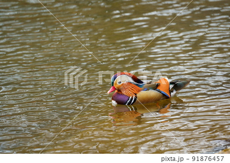 岩手県盛岡市高松池の孤独なオシドリの雄 雌を待つオシドリのオス