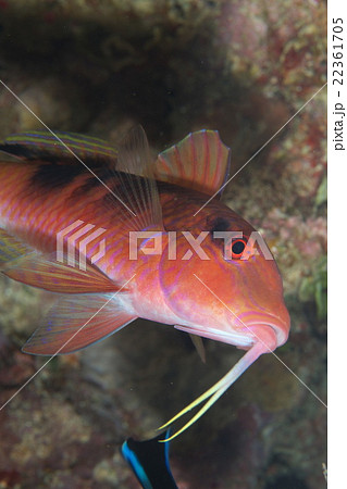 海水魚ヒメジのカラフルタイル画風切り絵イラスト背景有り