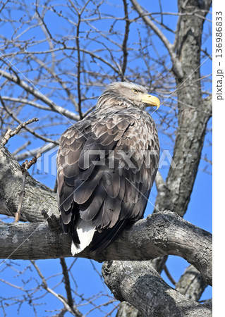 樹上で食事中のオオワシ成鳥