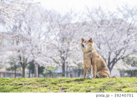 満開の桜とかわいい柴犬
