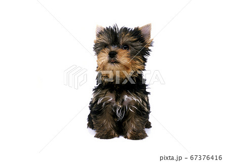 すわる子犬 ヨークシャーテリア 白バック