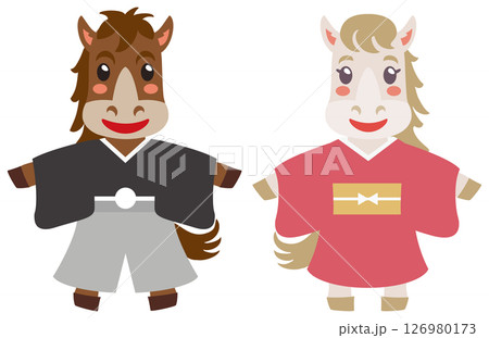 午年のかわいい馬のカップル