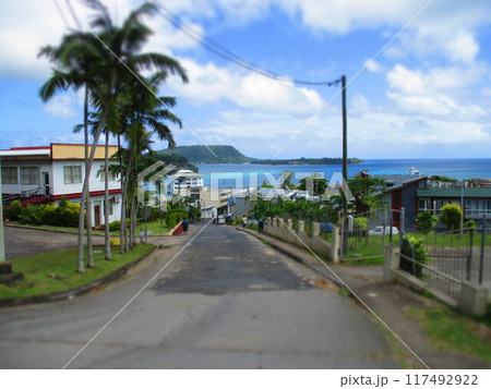 オセアニア フィジー共和国ビティレブ島の西の沖合いママヌザ諸島マナ島の展望台から眺めるビーチ