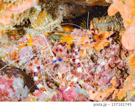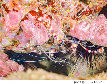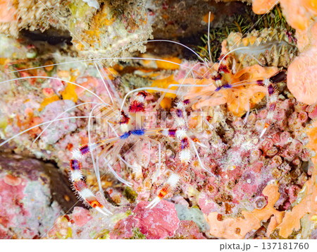 熱帯のサンゴ礁に生息する… アカシマシラヒゲエビ