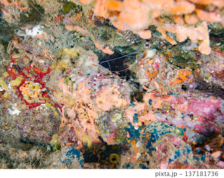 ヒリゾ浜の水中洞窟の美しいオトヒメエビ(オトヒメエビ科)のペア。 静岡県伊豆半島賀茂郡南伊豆町中木