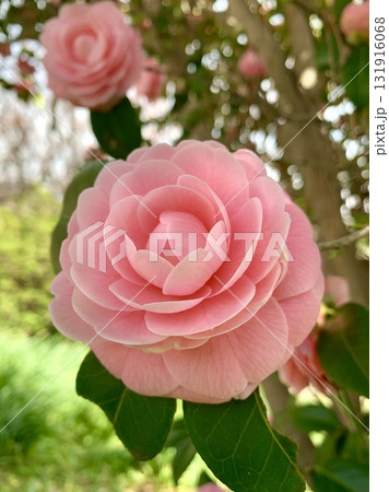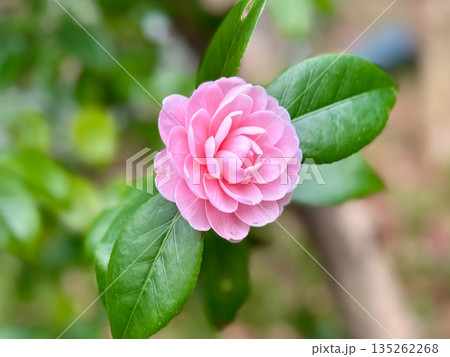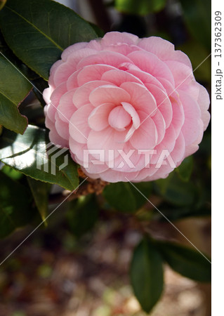 千重咲きが可憐なピンク色の椿(ツバキ)