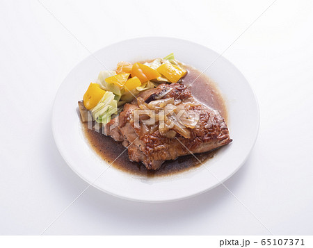 注)湯気は合成です。和風オニオンソースのハンバーグ、牛肉料理、肉料理。