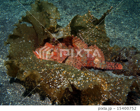 海藻にのるオニカサゴ