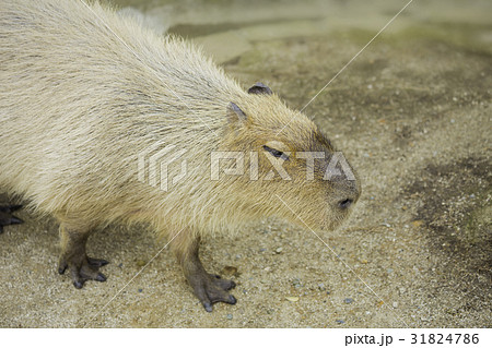カピバラ (動物 動物園 齧歯類 哺乳類 テンジクネズミ科 体毛 目 パーツカット 鬼天竺鼠 生物)