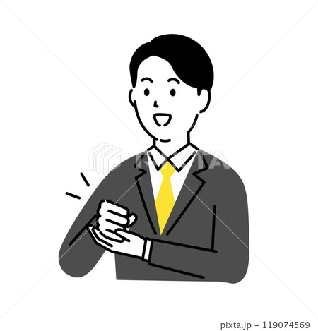 なるほどと手を打って理解する若いスーツ姿の男性のイラスト、ベクター
