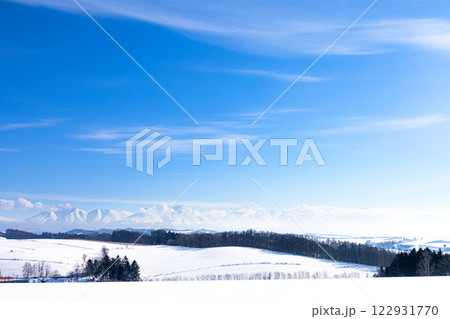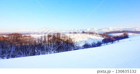 冬の北海道美瑛の丘から見た十勝岳連峰オプタテシケ山