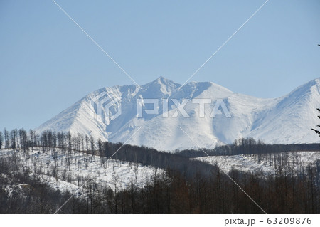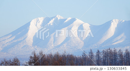 青空が広がる冬の北海道の風景オプタテシケ山の風景