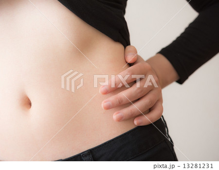 若い女性のお腹の写真。へその写真。
