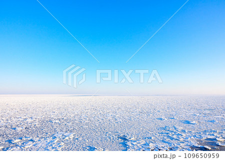 冬の北海道オホーツク海の流氷と青空