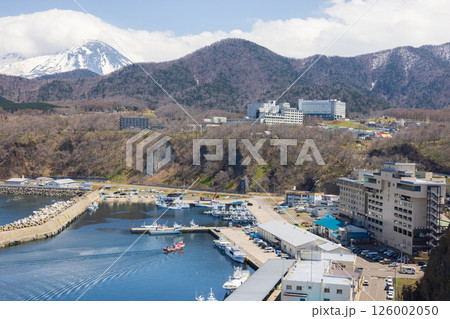 真冬の北海道オホーツク地方にある湧別漁港の結氷風景