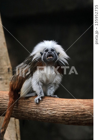 口を開けて見上げるワタボウシタマリン