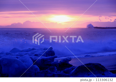 北海道佐呂間海岸氷山日の出
