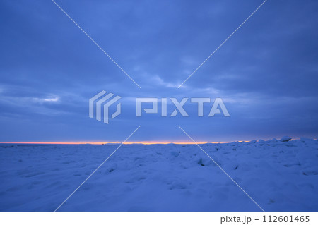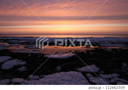 北海道イクシナ海岸流氷魂に降りる陽