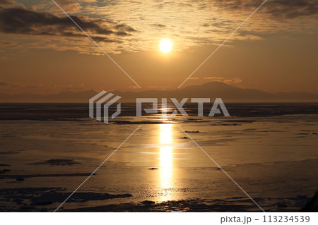 北海道オホーツク海流氷魂に落ちる陽