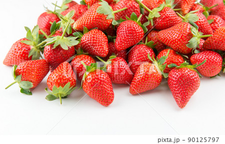一堆在白色背景上的新鮮草莓