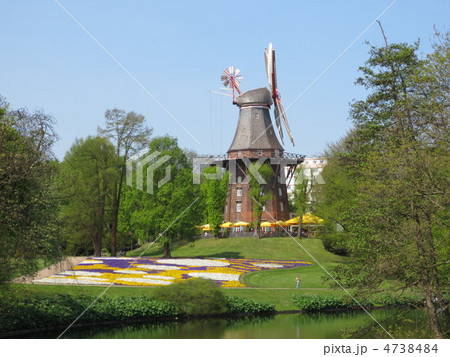 ブレーメンの公園の風車 ヨコ