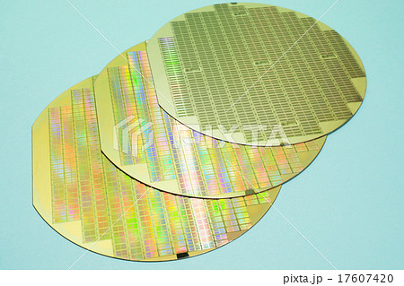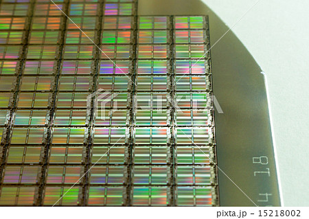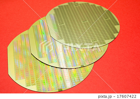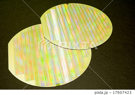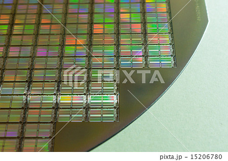 正面から見た虹色に反射するシリコンウェハーのイラスト