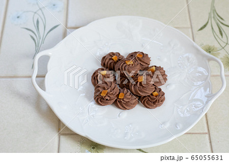 おうちでお菓子作り ガナッシュクッキーを作る工程 6-焼きあがったクッキーをお皿に盛り付ける