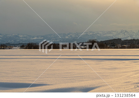 夕日に染まる雪原