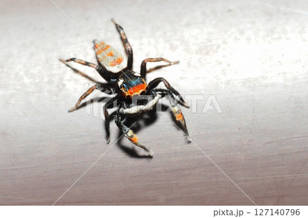 生き物 蜘蛛 カラオニグモ、小型のオニグモ。こちらはメス、メスの大きさは四~六ミリほど