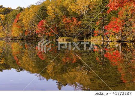 秋 紅葉 オンネトー湖 北海道 道東