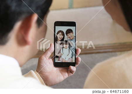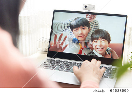人物 家族団らん 仲良し 笑顔 オンライン帰省