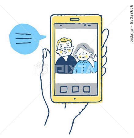 スマホで孫とビデオチャットする祖父母夫妻 イメージ