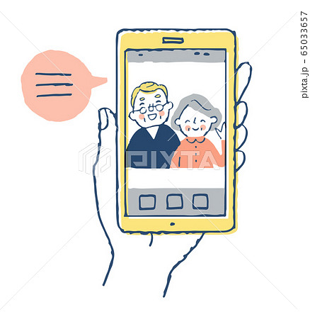 ビデオ通話で家族と会話をする高齢者のイラスト素材