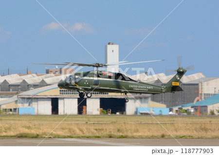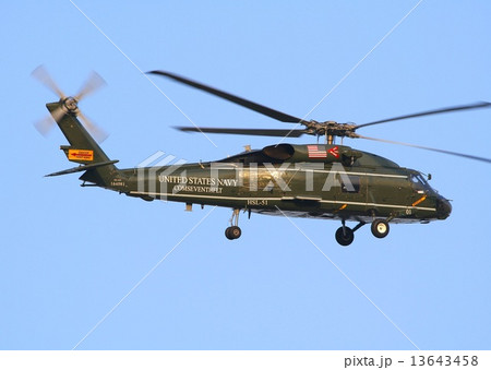低空飛行するアメリカ海軍SH-60F第七艦隊司令官専用ヘリコプター