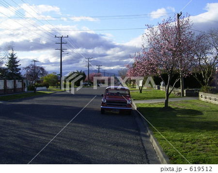 ニュージーランドの桜と車