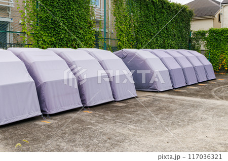 オートバイ専用駐輪場のオートバイの覆い
