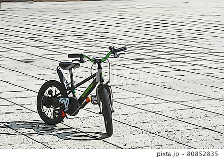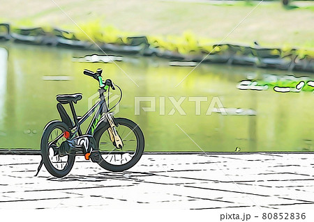パステル調 ”公園に置かれた子供用自転車” イラストイメージ