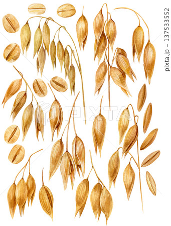 Oat seeds watercolor botanical set golden cereal grains isolated natural agriculture ingredient healthy food illustration