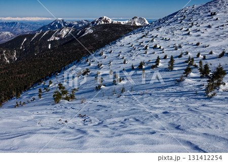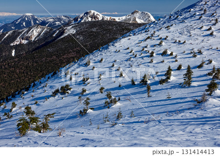 八ヶ岳連峰・硫黄岳への登りから見る天狗岳と白馬連峰