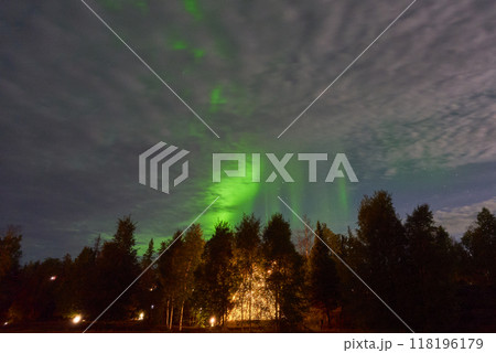 オーロラの見える景色、オーロラ鑑賞、写真、夜は、世界を感じて、神秘的にオーロラが降り注ぐ