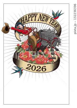 2026年賀状テンプレ「アメリカントラディショナルタトゥー」ハッピーニューイヤー 添え書き付